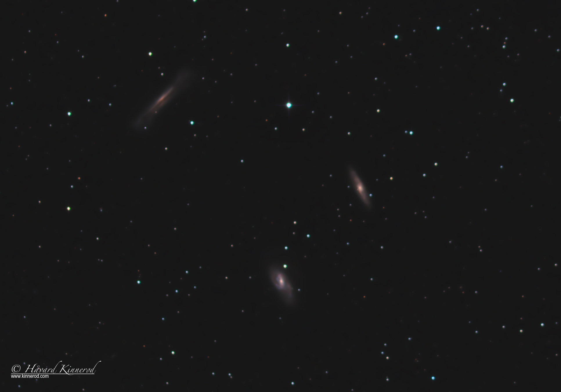 An excellent week and weekend for astrophotography. I spent all week watching the sun during the day, and both friday and saturday night had clear skies and moonrise at about 4am. I spent the early hours of friday night (march 13th) capturing RGB-data for the Rosette Nebula. When the Rosette Nebula disappeared below the horizon, I turned my telescope to the Leo Triplet (M66 group), and managed to capture about 4hrs of good data before I had to get some sleep. The result was the LRGB-image of the Leo Triplet: